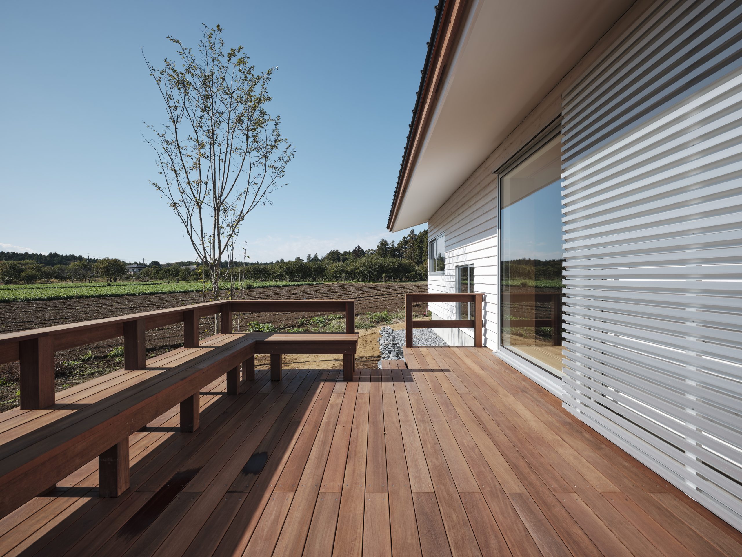 窓の向こうには、田畑と林。